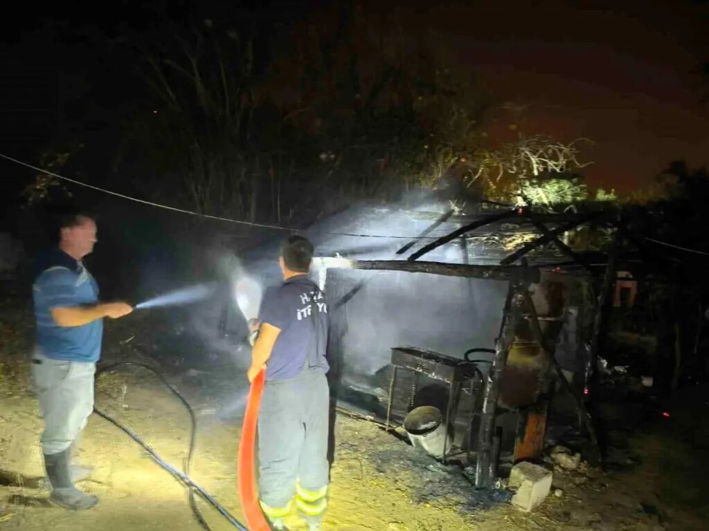 Hatay’ın Samandağ ilçesinde depo olarak kullanılan çadır, alevlere teslim olarak kullanılamaz hale geldi.