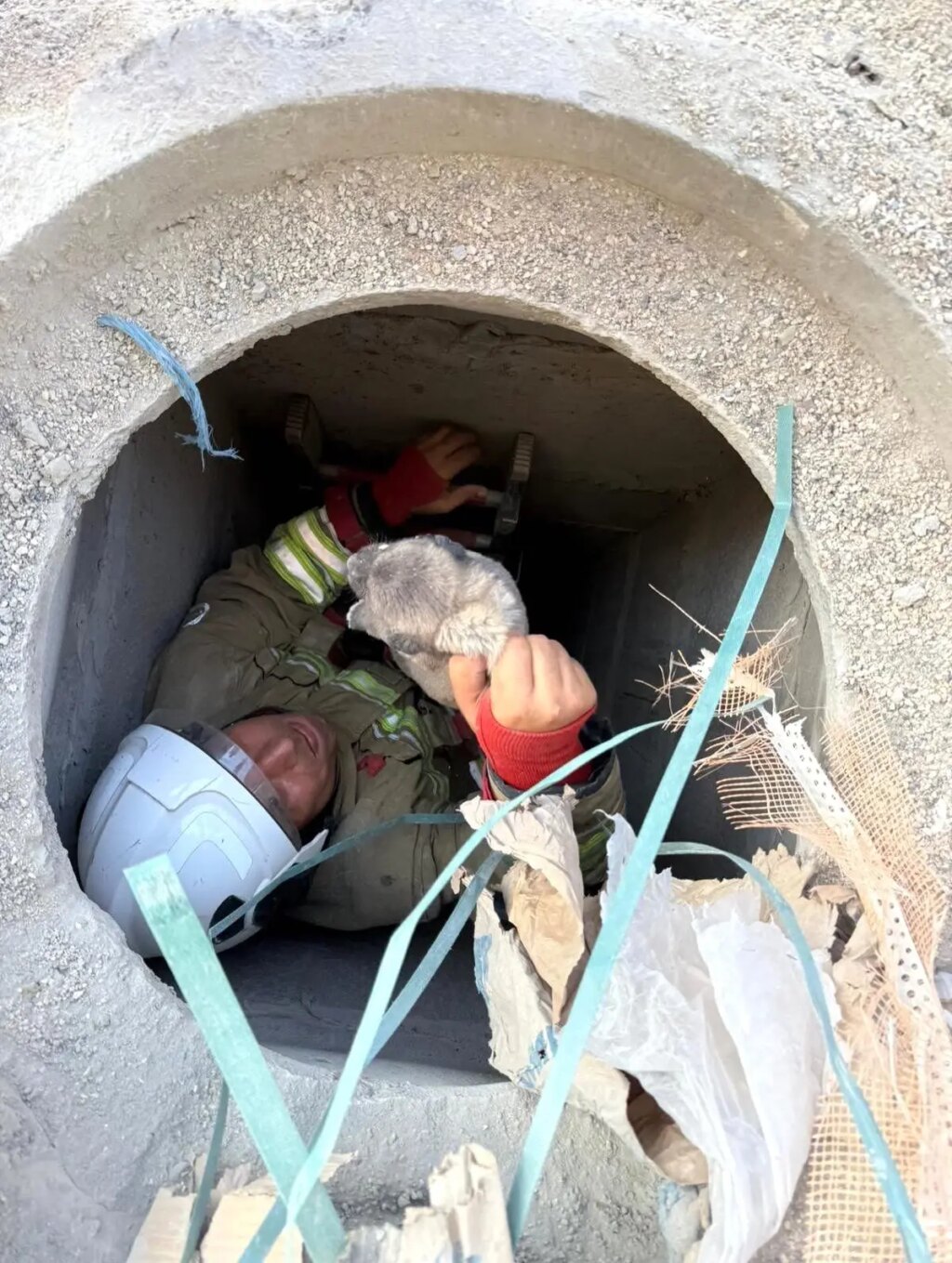 Hatay’da 5 metrelik kuyuya düşen yavru köpek, itfaiye takımları tarafından kurtarıldı.