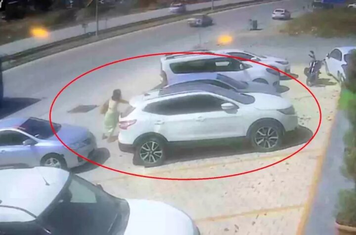 Hatay'da, spor salonu önünde park halindeki bir aracın harekete geçmesini fark eden Serap Keyifli,...