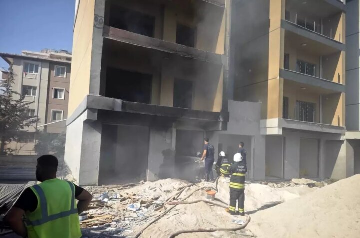 Hatay'ın Antakya ilçesinde inşaat halindeki bir binada çıkan yangın, itfaiye grupları tarafından süratle denetim...