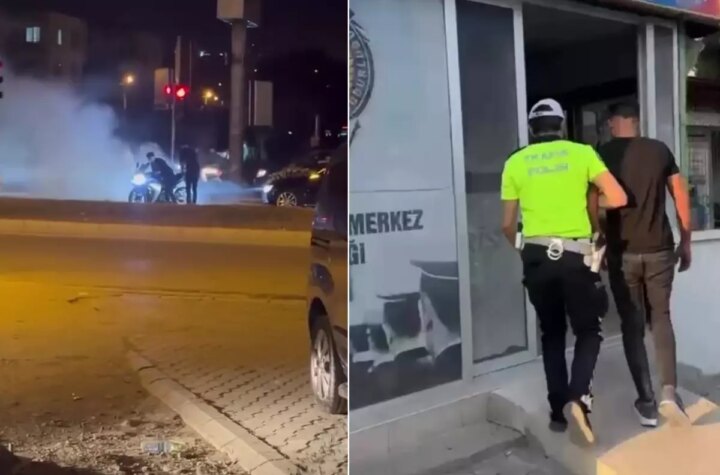 Hatay'da düğün konvoyunun önüne geçerek kırmızı ışıkta lastik yakan motosiklet şoförüne, 8 bin 487...