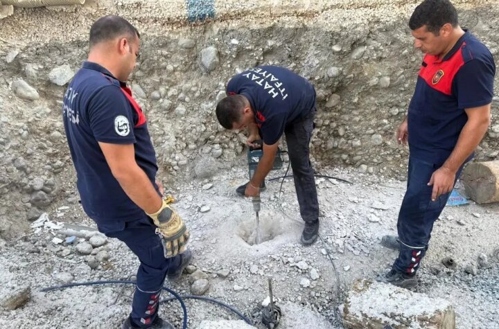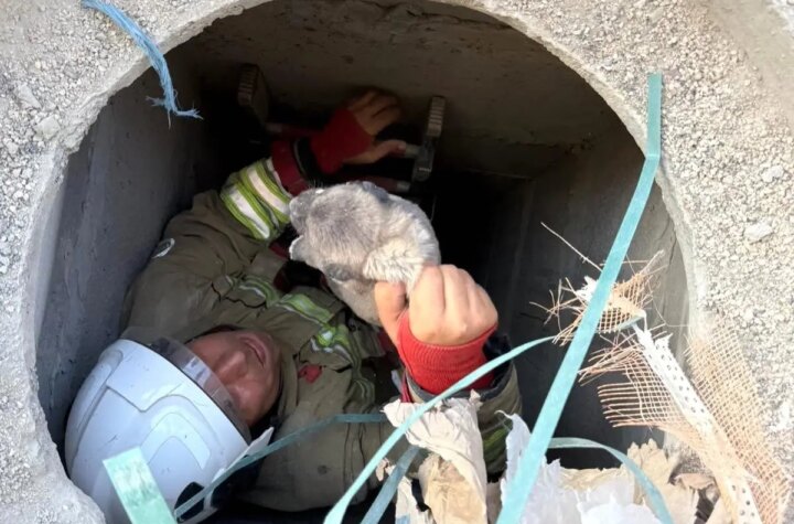 Antakya ilçesinde bir şantiye alanında bulunan 5 metrelik sarfiyat borusuna düşen yavru köpek, itfaiye...